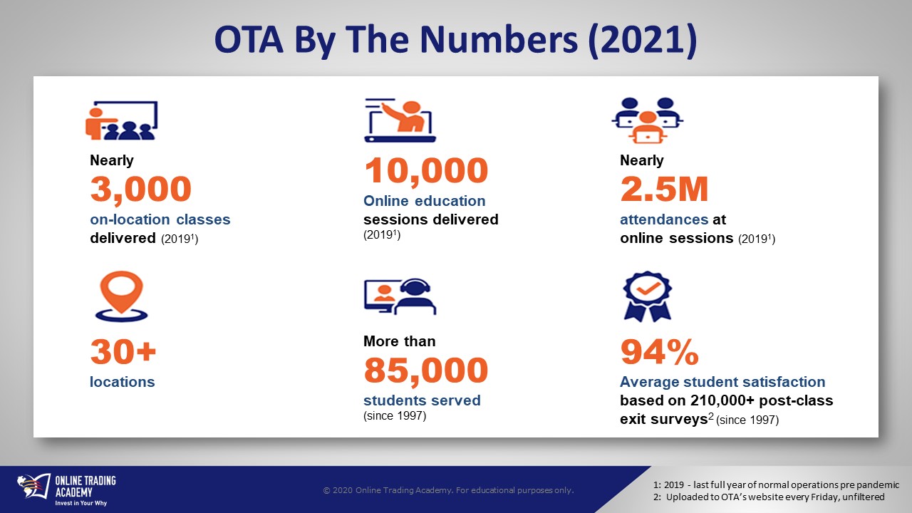 - 2021 is our 25th year in business since the founding of the business in 1997, celebrating our 25th anniversary in 2022 Read more: PRESS RELEASE: Online Trading Academy Celebrates 25th Year in Business